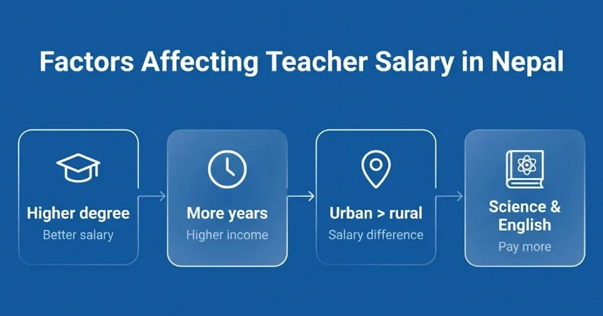 Teacher salary in Nepal is not fixed for everyone. It depends on several important factors such as education level, experience, working location, and subject expertise. Understanding these factors helps to know why some teachers earn more than others in different schools and areas.
